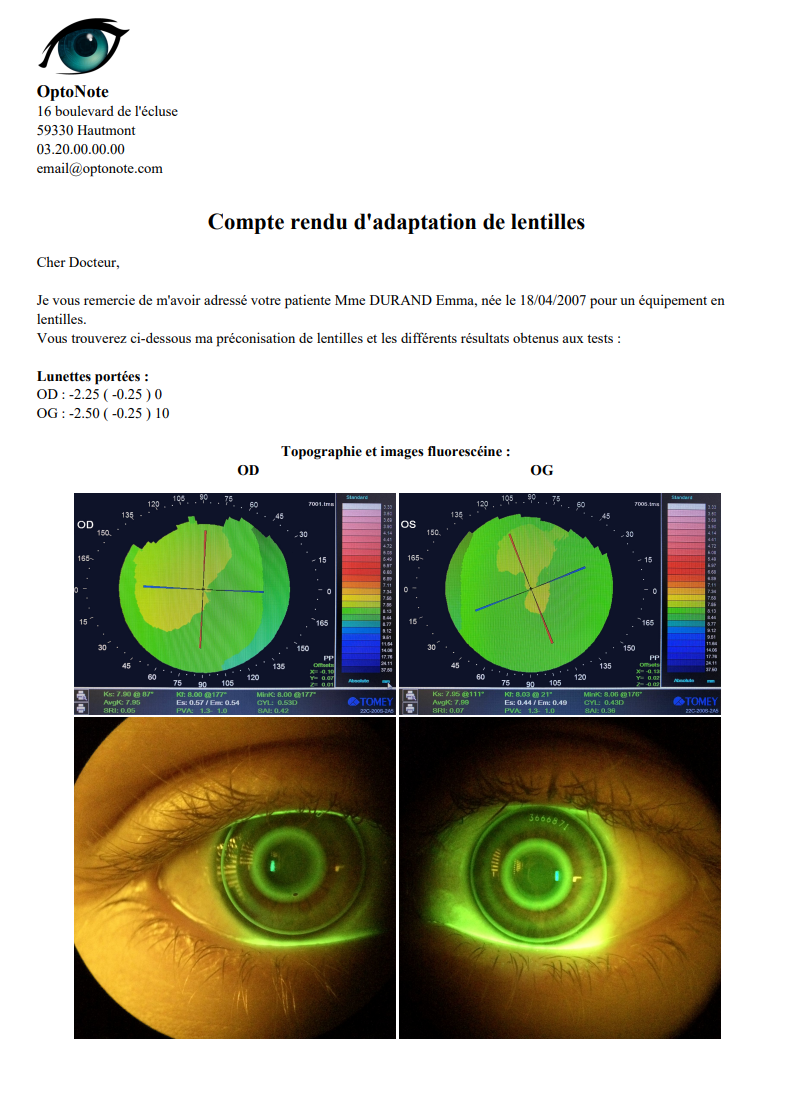 Centralisez toutes vos observations optométriques, contactologiques et de basse vision dans des fiches précises et faciles à interpréter.